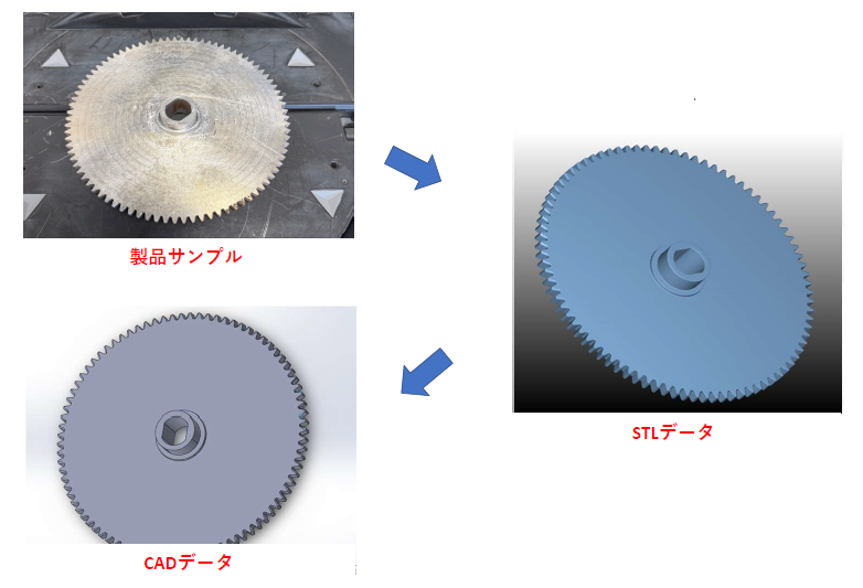 • 金型の再製作やメンテナンスを依頼したいが図面がない。こんな時はぜひ一度、当社にご相談ください。鋳造品などのサンプルがあれば金型製作可能です。図面や3Dモデルデータが無い製品でも形状を3Dスキャニングしてリバースエンジニアリングを活用し、金型を製作します。